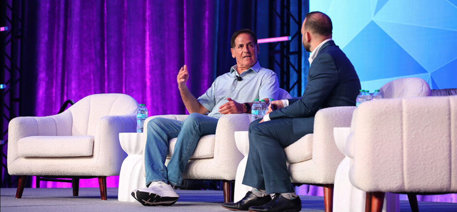 Mark Cuban joins Alex Kantrowitz, host of the Big Technology Podcast, onstage at Convergence AI Dallas 2026 in Irving on March 31. [Photo: Sandra Louz/DRC]