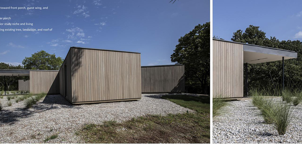 Hillen Residence, NIMMO, Flower Mound (2,750 square feet): This home is designed to connect residents to their natural surroundings by weaving itself into the landscape and graciously opening to expansive views of native Texas flora. The form of the plan was developed through an iterative process that examined circulation patterns, efficiencies, privacy layers, and targeted moments of directed views. The resulting layout enhances the user experience by bringing in daylight, framing views to nature, creating privacy between living zones, and bringing the family together in an open and engaging living space. Site specific, the plan also integrates into the landscape and in doing so avoids disturbing all existing trees which were retained to enrich the beauty of the landscape. Through the very nature of its finger-like structure, this house creates a variety of indoor and outdoor spaces with dynamic movement, form, and experience.![]()