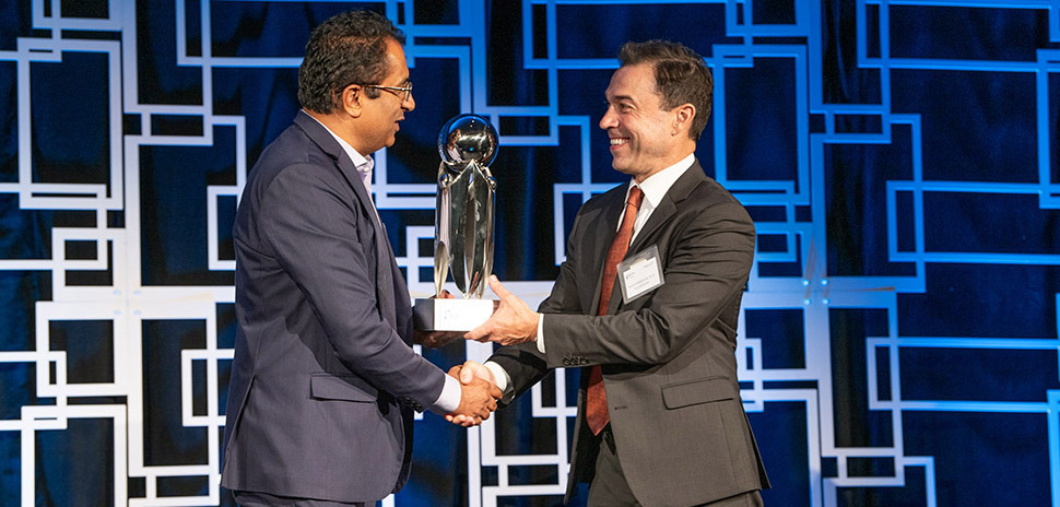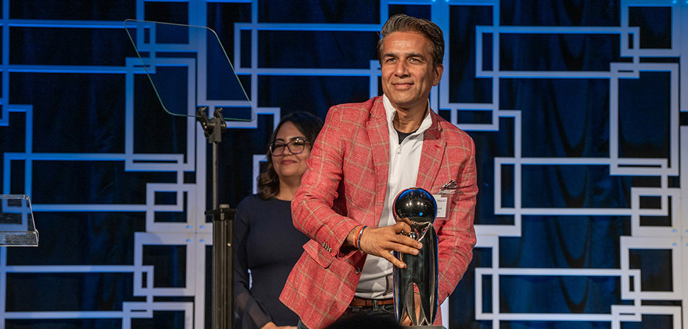 Prodapt North America MD and CEO Manish Vyas accepts his company’s Corporate Innovation Award [Photo: RD Images]