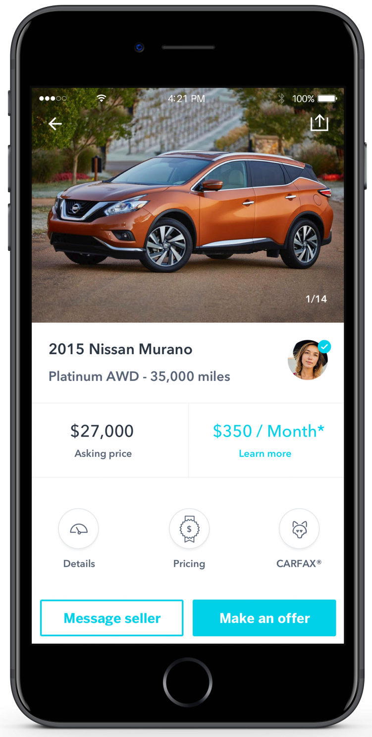 The peer-to-peer car sales app, which launched during 2016 in Colorado, allows people to buy, sell, finance, and refinance cars by doing little more than snapping a photo.