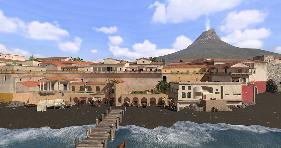 Portyl reimagines ancient sites like Herculaneum Beach with cinematic CGI synced to real-world ruins. [Image: Histoury]