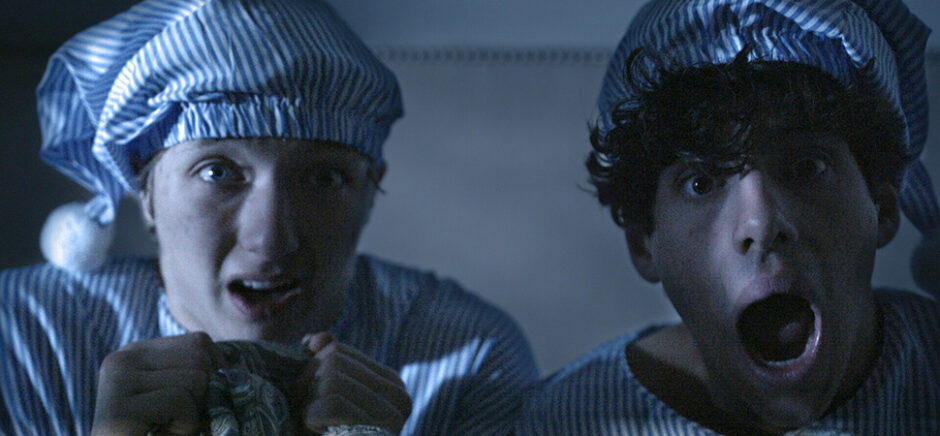 Night terrors come to life in “Tinkle,” Davis Knocke’s surreal sibling comedy where two brothers settle in to sleep—only to be dragged into a hilariously horrifying dreamscape. [Still via Pegasus Film Festival]