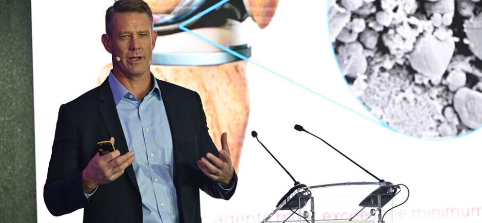 Osteal Therapeutics CEO David Thompson, shown here at LSI Europe '23 Emerging Medtech Summit, secured a $50M Series D funding round for the Dallas biotech last summer. Patent No. 12239538, recently granted to Osteal, describes a system providing "continuous delivery of antibiotic therapy locally, at the infection site." Thompson has previously described periprosthetic joint infections as a "cancer-like killer" that affects some joint replacement patients. [Video screenshot]