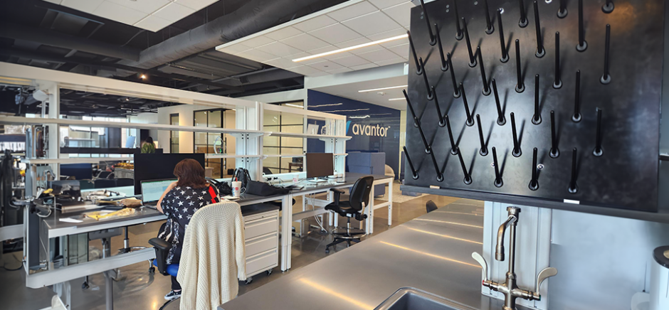 Avantor's new location in Cypress Waters functions as workspace, showroom, design center in one. Photo Illustration: DRC and Adobe Illustrator, generative fill