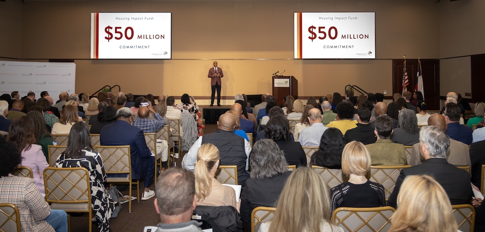 As part of its strategic priority to build “a thriving community,” Communities Foundation of Texas (CFT) has announced a new five-year, $50 million commitment to investing in neighborhoods and housing. The announcement was made Thursday before a large audience of city of Dallas, nonprofit, and foundation partner supporters—amid hopes that future matching grants could create “a $100 million Housing Impact Fund dedicated to lasting change.”