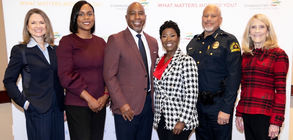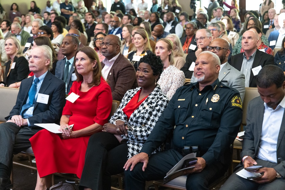 Among the attendees at CFT’s Housing Impact Fund announcement were, foreground left to right, Councilmember Paul Ridley, Councilmember Gay Donnell Willis, Dallas City Manager Kim Bizor Tolbert, and DPD Chief Daniel C. Comeaux. [Photo: CFT]