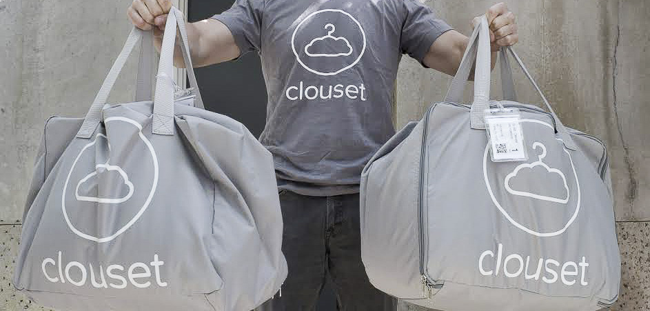 Clouset customers request specially-made bags, load them up with clothes, and then have them picked up on demand. [Photo courtesy of Clouset]