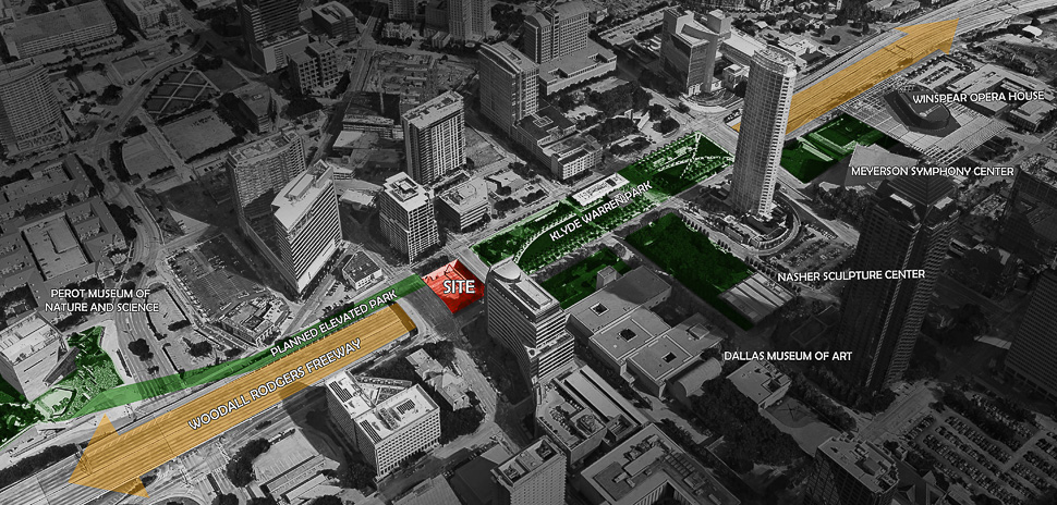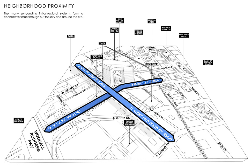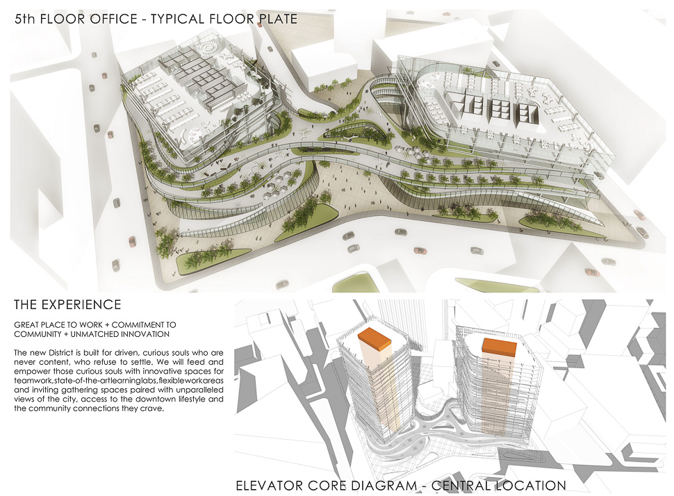 The project will be at the heart of a larger development effort within the northwest portion of downtown, an area slated for a new art museum, film institute, and several residential high-rise towers, according to the entry.