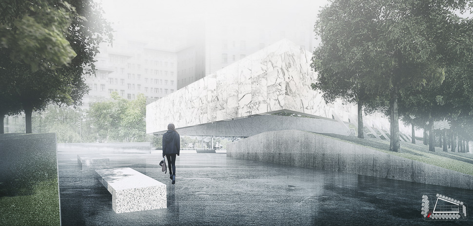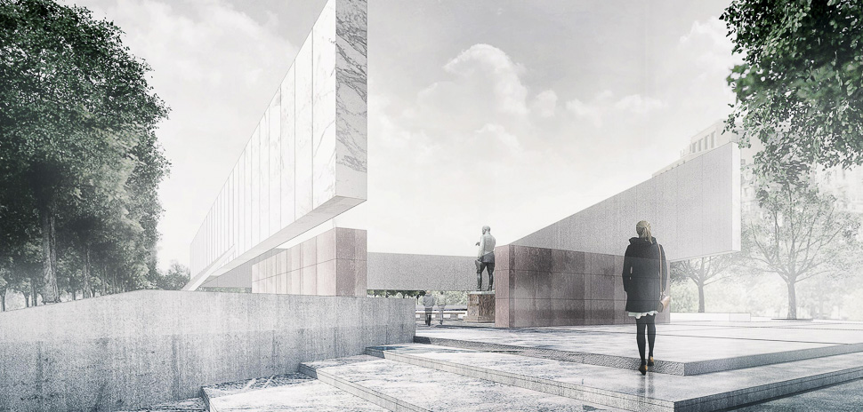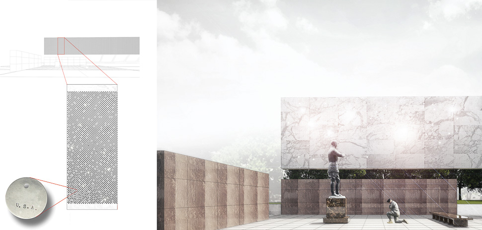 The outer walls were designed to work in tandem with the existing Pershing Memorial.