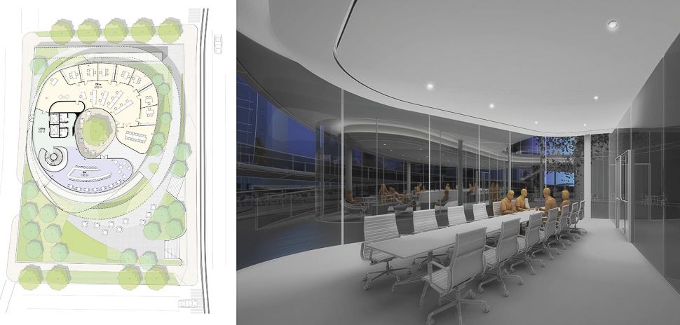 The district is designed as a “catcher’s mitt,” according to the entry. The urban loop within the “mitt” is turned vertical as a volumetric gesture to forma campus loop.