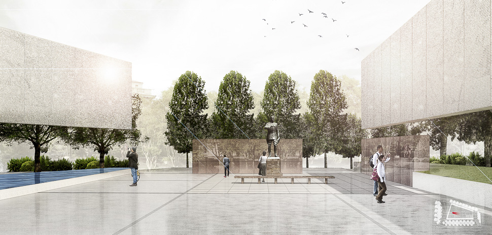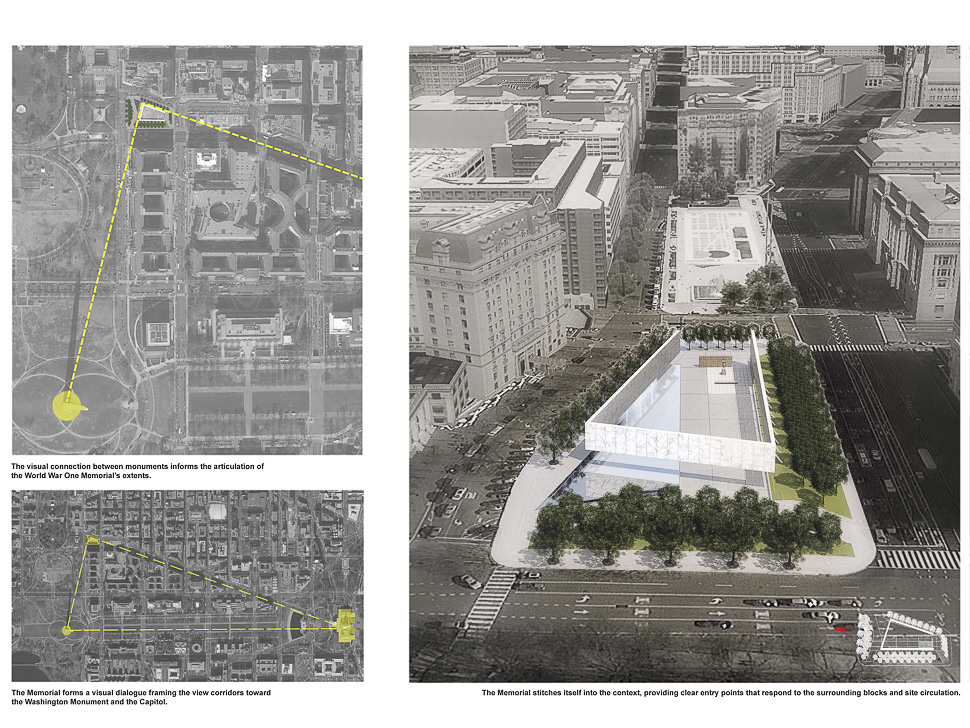The National World War One Memorial won the People’s Choice Award. The fourth side of the Memorial is anchored by the existing Pershing Memorial, and is preserved in its current location as part of the overall composition, according to the entry.