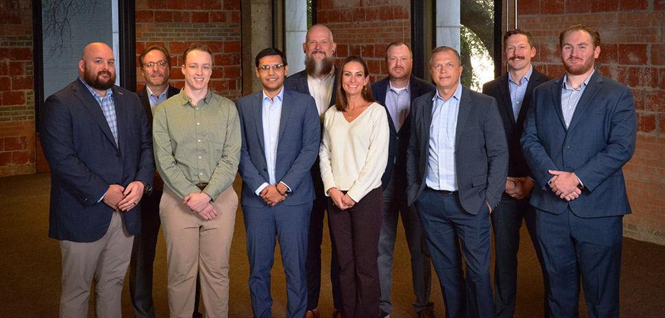 The Skyward team, left to right: Josh Duttlinger, Michael Riley, Connor Martin, Eddie Carrizales, Andy Hollingsworth, Elizabeth Smith, Mike Young, Justin Green, Kevin Rex, and Jake Pryor [Photo: Skyward]