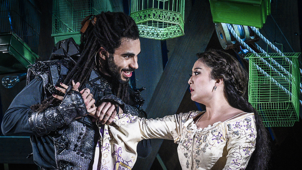 Ortiz successfully implemented this idea, and two actors now play five characters each. There is “some animation in all of them — some look at each other and communicate,” he said. The nobles are, of course, adorned with tuna-can and KFC-bucket hats.
