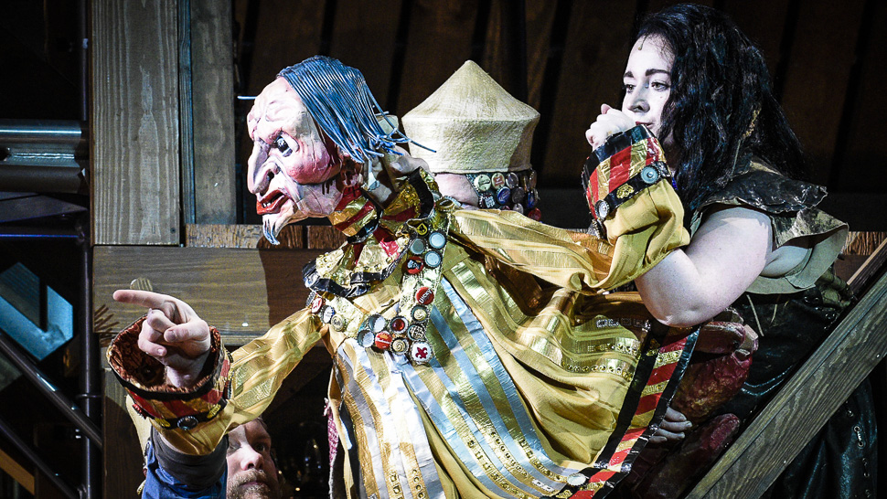 In Hood, puppets play both main and supporting roles. Some puppets are operated by two or three people at a time.
