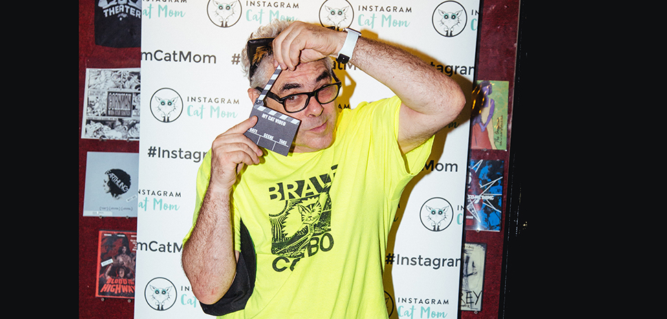 Bart Weiss, founder and artistic director of Dallas VideoFest is a cat person himself. His four cats: Bitzer, CC Rocket, Ali and Trouble (aka Bubble), allow Bart and his wife, Susan, and their pit bull, Petey, to live with them. [Courtesy of Dallas VideoFest]