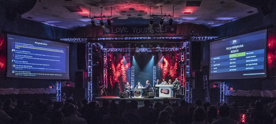Contenders went toe to toe on a hotbed of technology topics at Digital Fight Club. Ten of Dallas-Fort Worth’s top tech minds debated unanswered questions in VR, IoT, Big Data, Digital Content and AI/Augmented Reality.