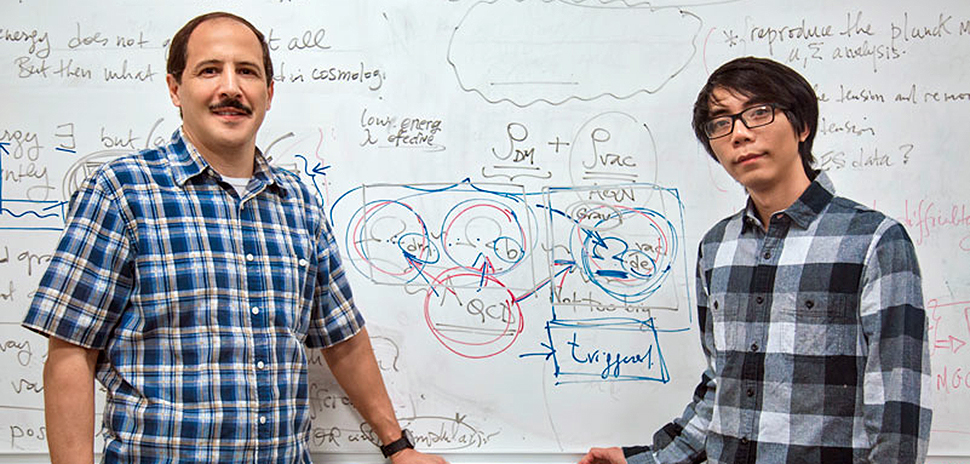 Mustapha Ishak-Boushaki (left) and his doctoral student, Weikang Lin, have developed a new mathematical tool called the index of inconsistency, or IOI, that identifies and quantifies inconsistencies in cosmological data from various missions and experiments. [Photo courtesy of UT Dallas]