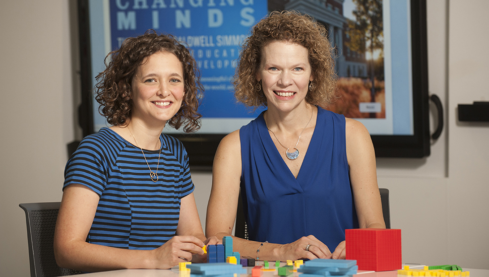 Lindsey Perry (left) and Leanne Ketterlin Geller will do research into the continuing struggle with mathematics by U.S. school children. [SMU Photo by HIllsman Stuart Jackson]