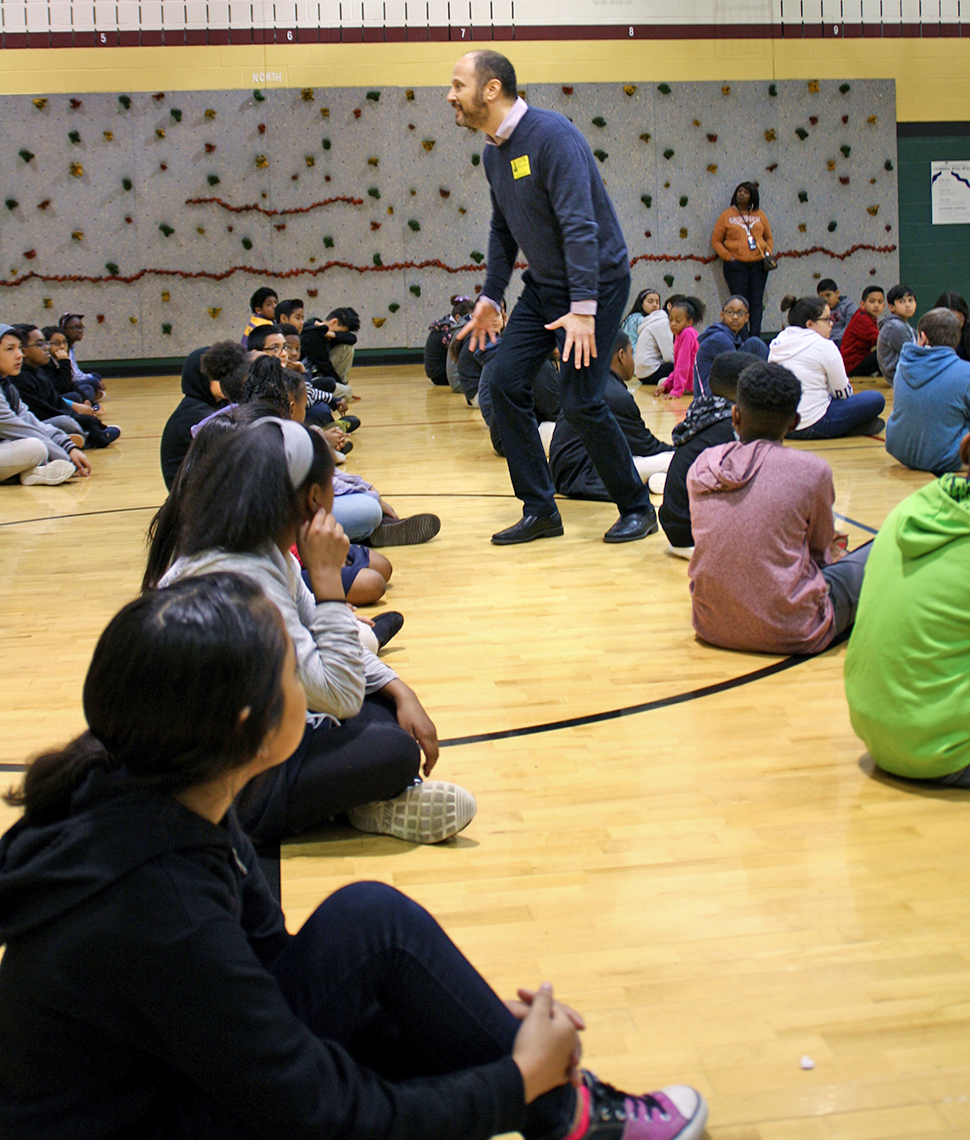 In a gym full of fifth-graders Friday, Daniel Sunshine explained how mindfulness can be key in concentration and reaching a more composed state.