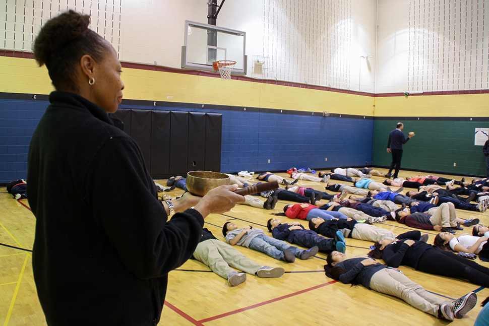 As teachers hit Tibetan singing bowls, students listened until the ringing faded.