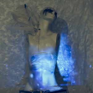 Kris Swenson: Created in only two weekends, this display includes a bust statue accessorized with feathers, ribbons, and other organic items. Swenson is primarily a filmmaker, and the work is illuminated by a moving image from a projector. “I like anything natural. I like how that was a part of something and I found it on the ground. I don’t know what it’s for but it felt important.”