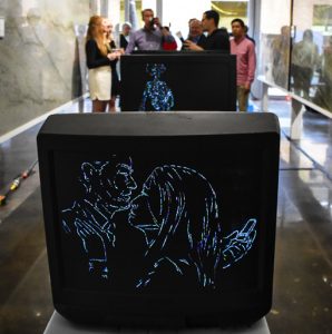 Melissa Gonzales was intrigued by Scott VanRavenswaay’s exhibit, which featured a machine drawing a scanned photo with one continuous line.