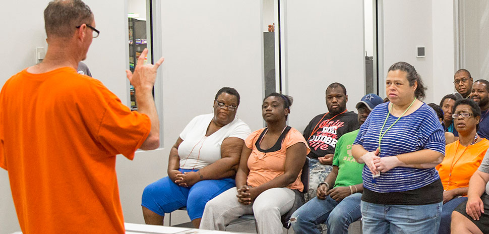 Chris Mosley teaches sign language to participants in Goodwill Industries of Fort Worth’s S.T.A.R.S. program. [Photo: Chase Mardis]