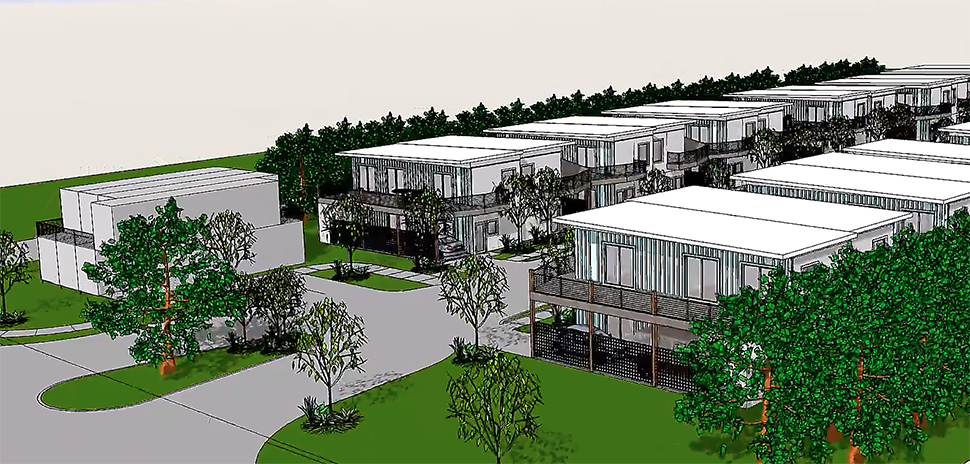 Cotton Groves’ homes will be made from repurposed shipping containers.