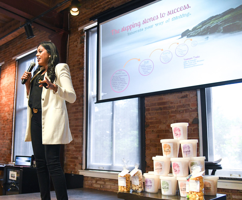 One of the female entrepreneur attendees, Ami Thakkar Raval, founder of the podcast AmiTuckeredOut said, “It was so encouraging to hear from the speakers. Yasmeen said not to worry about a business plan, and for me, that was a huge weight off my shoulders.”