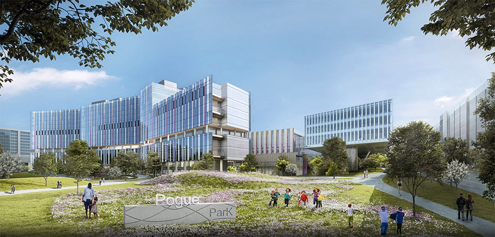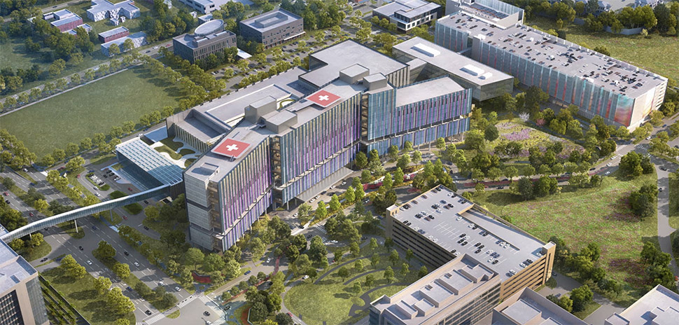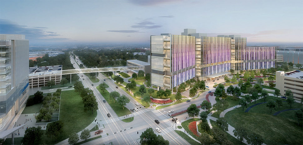 The new Dallas pediatric campus will be located in Dallas’ Southwestern Medical District, directly across from UT Southwestern’s William P. Clements Jr. University Hospital. Rendering: Children’s Health