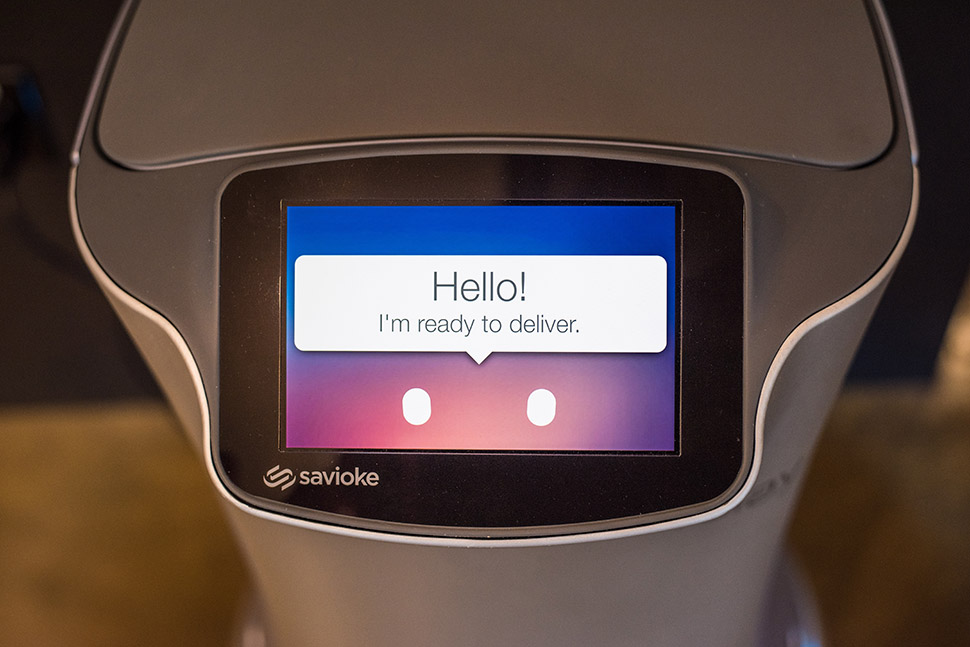 “It’s got smart-enough technology so that it’s constantly re-evaluating what’s the best route to take to get to whatever location it needs to be,” said Rob Buehler, Savioke’s regional director of sales.