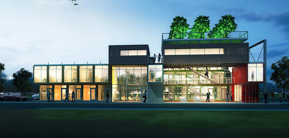 The development will have 38 multiuse business suites created from more than 100 shipping containers.