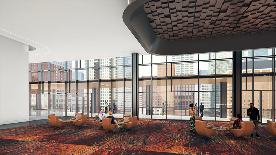 Interior spaces will feature leather, mesquite wood, blackened metal, and exposed structural steel, complemented by warm tones and custom patterns that nod to local culture, including carpet designs and ballroom ceilings inspired by Texas sunsets, cattle brands and the city’s longhorn logo.