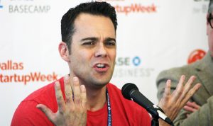 Javier Heredia, owner of Social Pie, makes a point during the Dallas Startup Week panel. [Photo by Lance Murray]