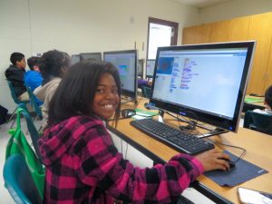 Marsalis Elementary student Layla Harrison attends the weekly after-school coding program.