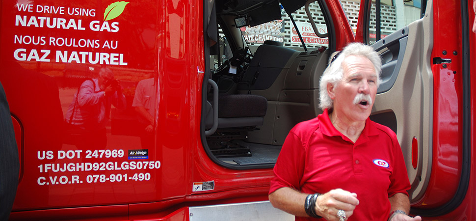 Driver Don Simpson piloted the CNG-powered truck roughly 2,000 miles from Quebec to Dallas. (Photo by Lance Murray)