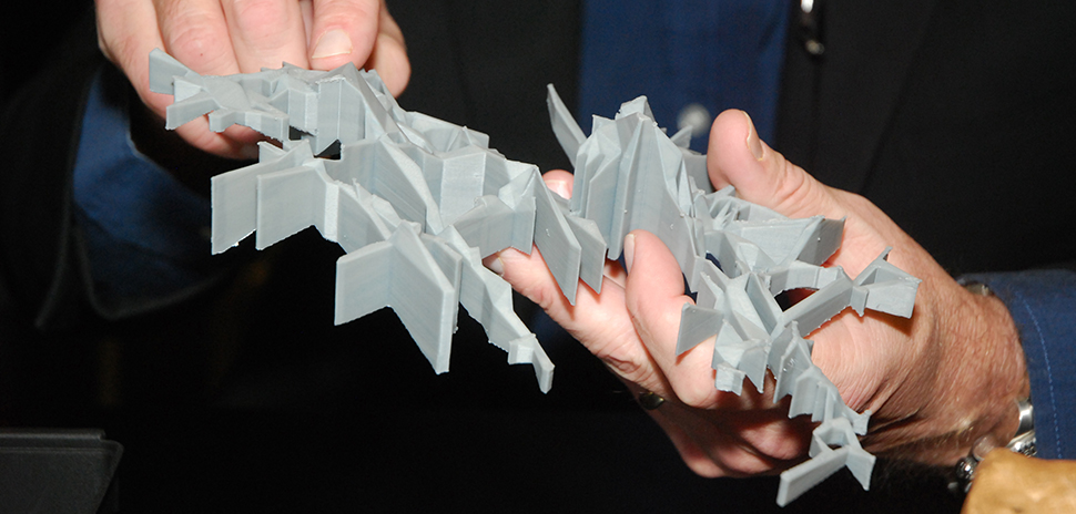 Dr. Lee Berger holds a model of the Rising Star cave system in South Africa.