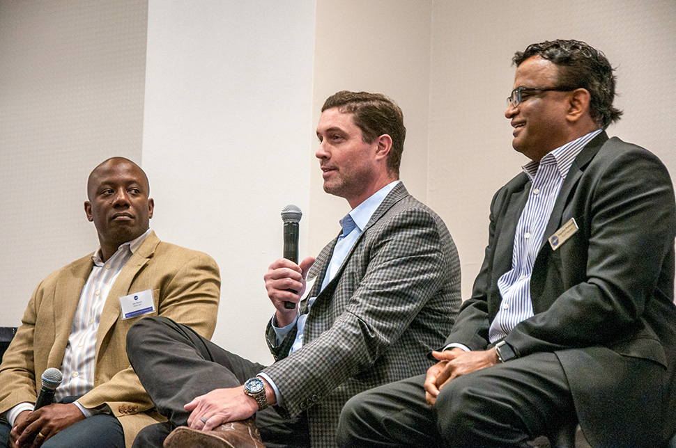 Pranav Tyagi, CEO of Tango Analytics, center, speaks during the SaaS (Software as a Service) CEO Panel at the 2017 Annual Technology Conference.