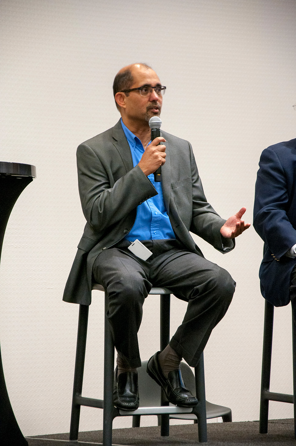 Shouvik Bhattacharya, moderator of the Investor Panel, asks the panelists a question.