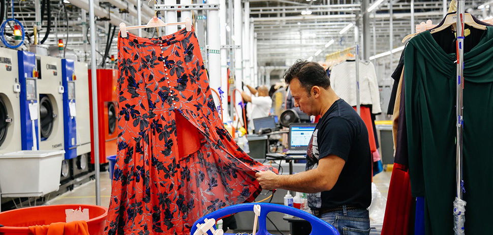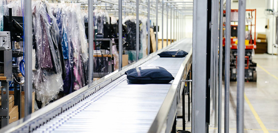 An employee works with a garment at Rent the Runway’s distribution center in New Jersey. [Photo courtesy of Rent the Runway]