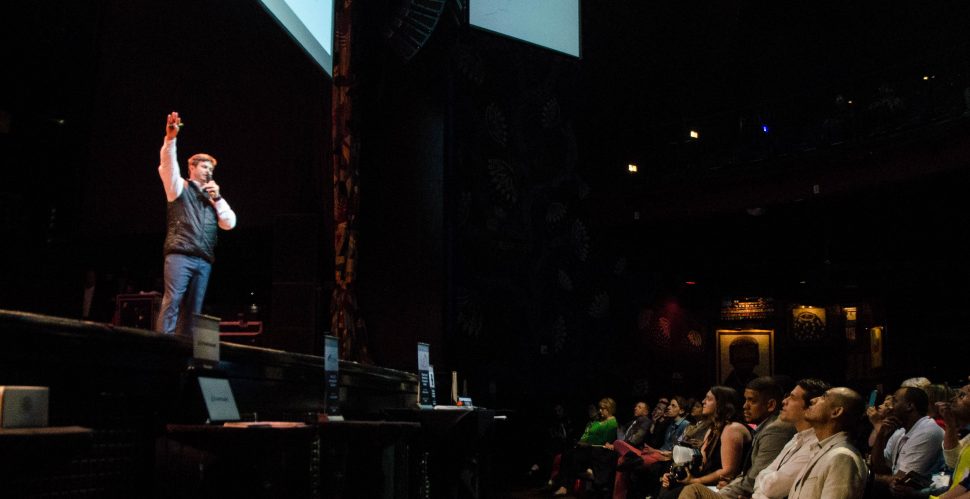 Justin White, CEO of Selery Fulfillment, pitches his business plan at House of Blues in 2016. [ Photo: Hannah Ridings ]