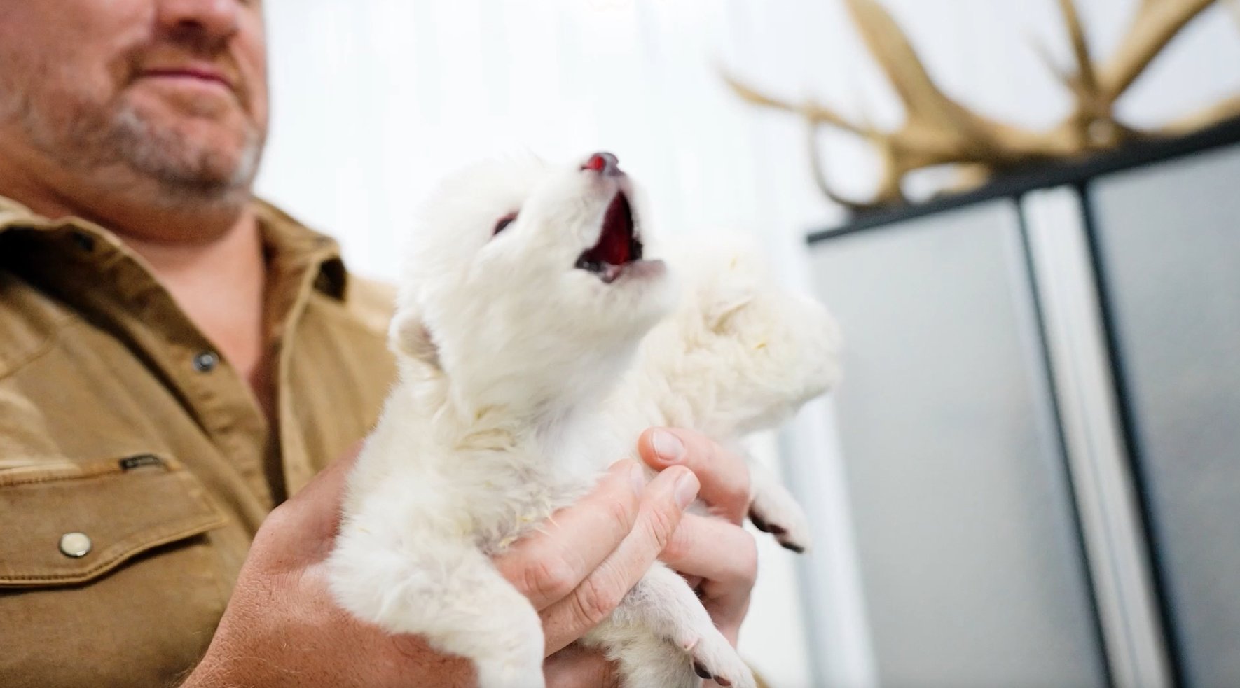 Dire wolf pups “de-extincted” via Colossal Biosciences technology. [Screenshot: Colossal video]