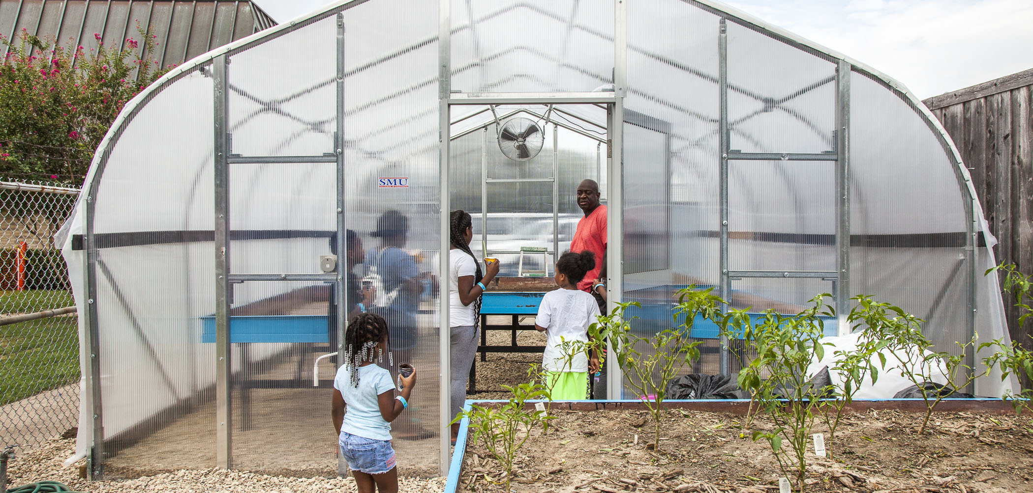 The hoop house at the Seedling Farm was funded through a grant from SMU Lyle School of Engineering’s Hart Center for Engineering Leadership. [Photo: Kim Leeson]