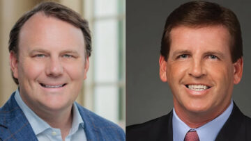 Chris Heim, CEO of Atomic Data, left, and Scott Jeffcoat, founder and managing partner of Venue Wireless [Composite art: DI Studio; Source images, Atomic Data]