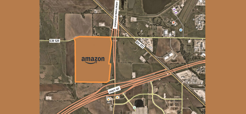 Map shows the location of Amazon's 1.7 million-square-foot Project Maverick facility to be built in Cleburne. It's just one of the projects that. have helped DFW lead the U.S. in industrial development. [Image: City of Cleburne]