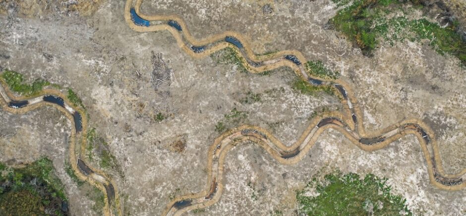 Call Junction mitigation bank's newly constructed stream, utilizing natural channel design to restore natural hydrology, stabilize the landscape, and enhance riparian habitat across the project site. [Image: Conservation Equity Management]