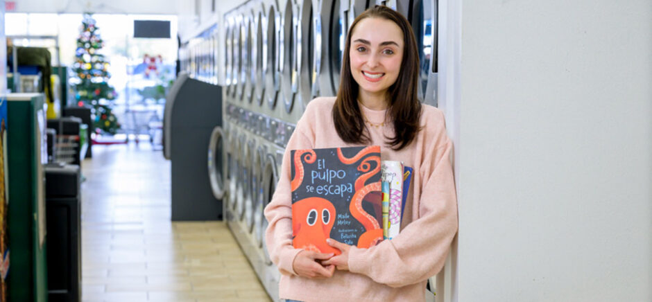 Ryland Adzich at one of her "laundromat libraries" at the Scrub-a-Dubs laundromat in East Dallas. [Photo: SMU]
