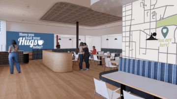 Hugs Café is a nonprofit dedicated to providing training and employment for adults with disabilities. Its new HQ in McKinney will include a training academy and training kitchen, four classrooms, a rooftop deck, and a patio.