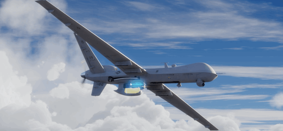 Rendering of Raytheon's SharpSight surveillance radar on a General Atomics Reaper drone. [Video still: Raytheon]