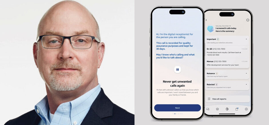 AT&T Chief Data Officer Andy Markus and the company's new AI "digital receptionist." [Photos: LinkedIn, AT&T]